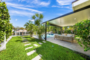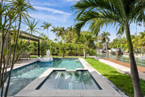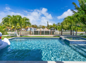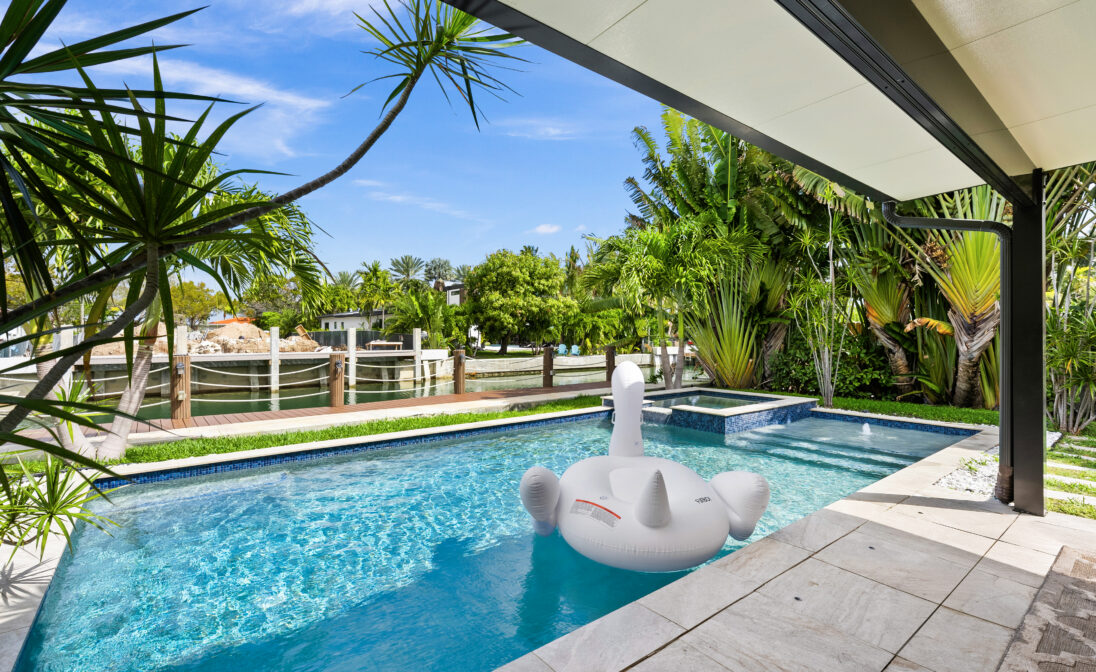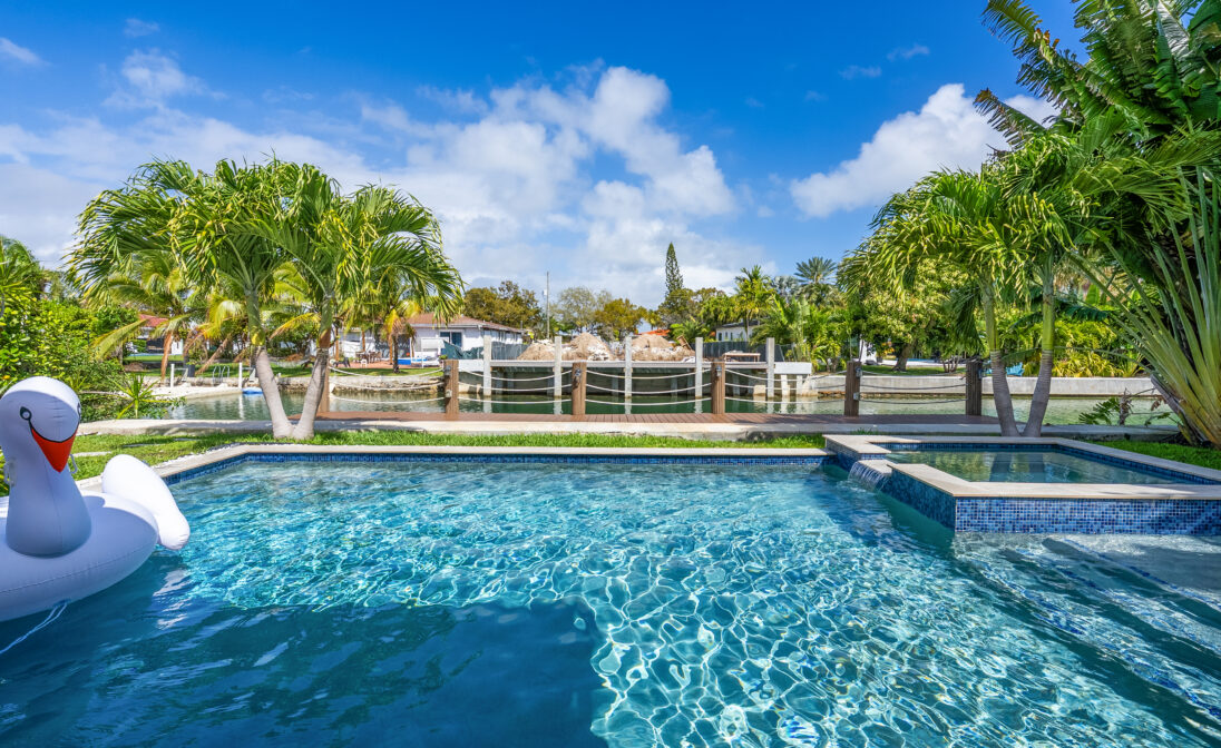 Step outside to your private waterfront oasis featuring a heated swimming pool, relaxing jacuzzi, and a brand new boat dock overlooking the water. Smart home technology, integrated audio, impact windows, security system, and convenient parking create a seamless and comfortable stay.
