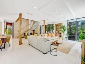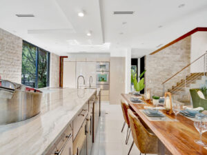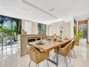 Dining Area: Open-concept dining with seating for 6–10 guests, designer lighting, and direct access to the kitchen and living areas for seamless hosting.