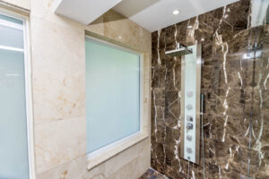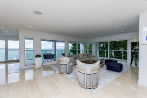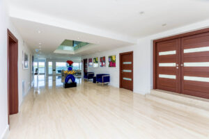 Wet Bar: The bar area includes sleek marble countertops, high-end appliances, and seating — ideal for cocktail hours or hosting events.